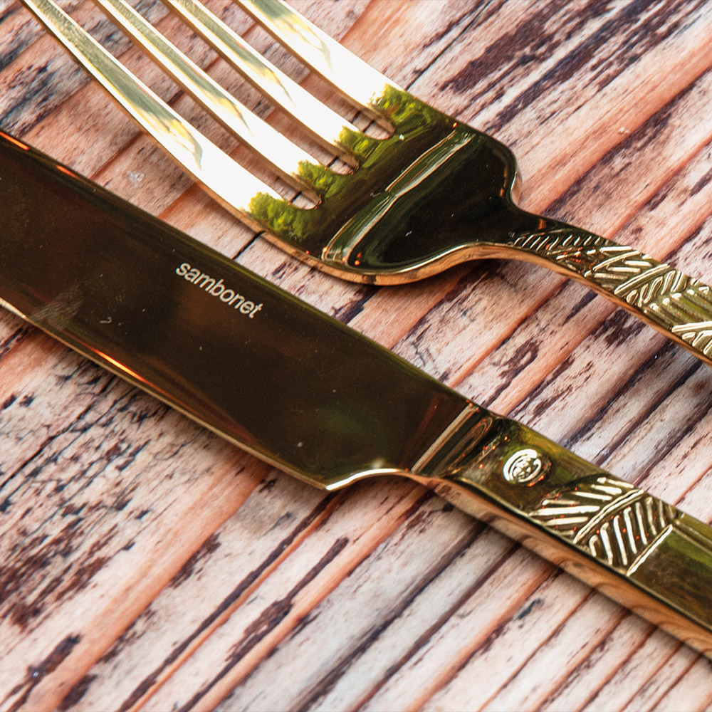 La firma italiana, Sambonet, lleva más de 200 años desarrollando diseño y funcionalidad. A la vanguardia, en cuanto a técnicas de plateado que aplican sobre el metal, revolucionó lo que entonces era el acero inoxidable.