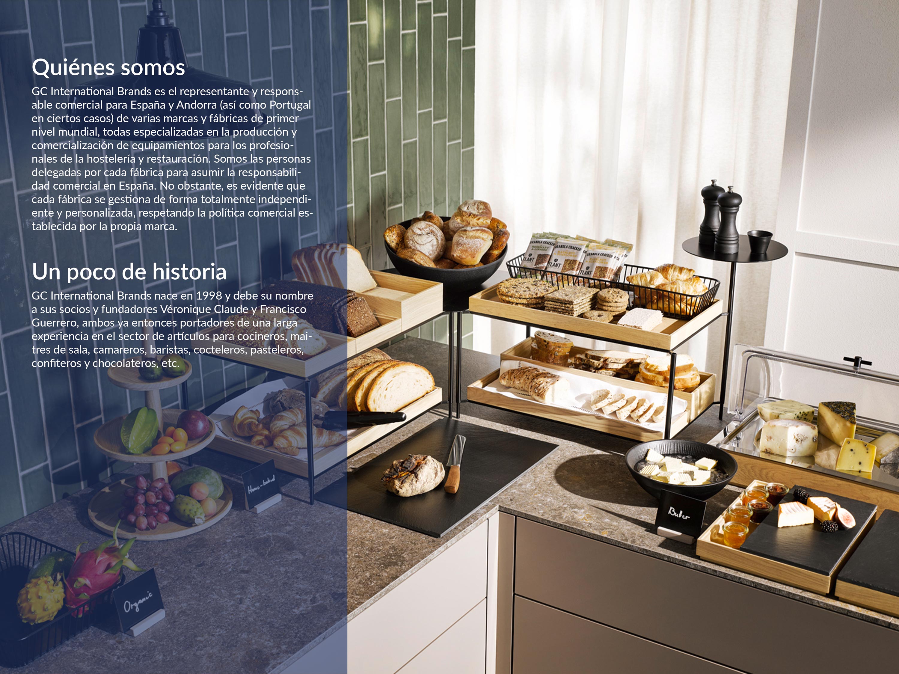 GC International Brands es el representante y responsable comercial para España y Andorra (así como Portugal en ciertos casos) de varias marcas y fábricas de primer nivel mundial, todas especializadas en la producción y comercialización de equipamientos para los profesionales de la hostelería y restauración. Somos las personas delegadas por cada fábrica para asumir la responsabilidad comercial en España. No obstante, es evidente que cada fábrica se gestiona de forma totalmente independiente y personalizada, respetando la politica comercial establecida por la propia marca.